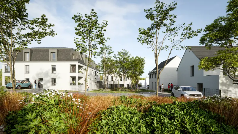 Résidence Viadoma à Loire-Authion 49, programme immobilier comprenant 19 appartements et 6 maisons avec espaces verts paysagers.